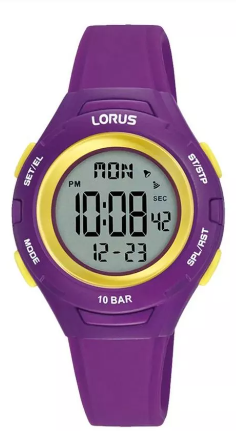 MONTRE LORUS NUMÉRIQUE MAUVE ET JAUNE- #R2397PX9 ,